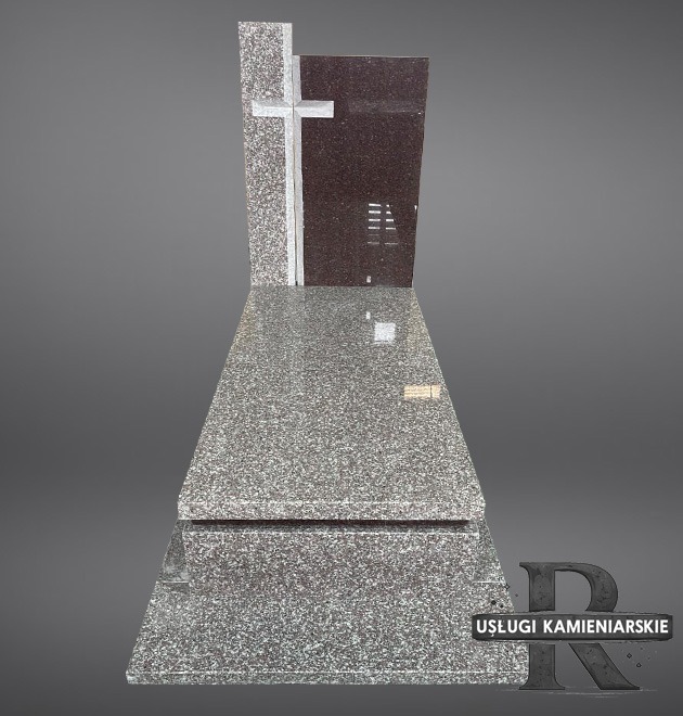 Prezentujemy klasyczny nagrobek wykonany z granitu, który łączy w sobie trwałość naturalnego kamienia z nowoczesną estetyką. Ten model wyróżnia się dwukolorową kompozycją tablicy napisowej oraz precyzyjnie wyżłobionym, jasnym krzyżem, który nadaje całości sakralnego i podniosłego charakteru.
