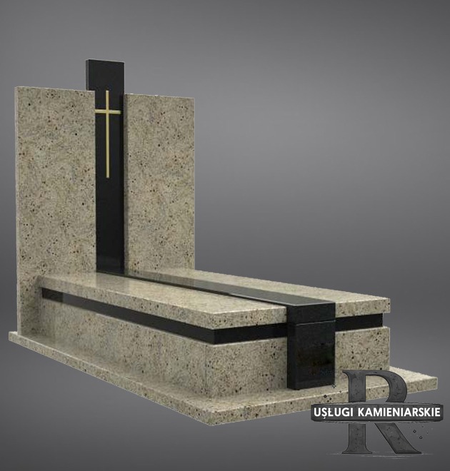 Model P29 to harmonijne zestawienie dwóch najbardziej cenionych granitów świata. Głęboka, niemal smolista czerń India Black stanowi idealną ramę dla finezyjnego, złocisto-piaskowego Kashmir Gold. Powierzchnia nagrobka została wykończona na wysoki połysk, co nie tylko podkreśla głębię naturalnego ziarna kamienia, ale również sprawia, że jest on niezwykle łatwy w pielęgnacji i odporny na warunki atmosferyczne.