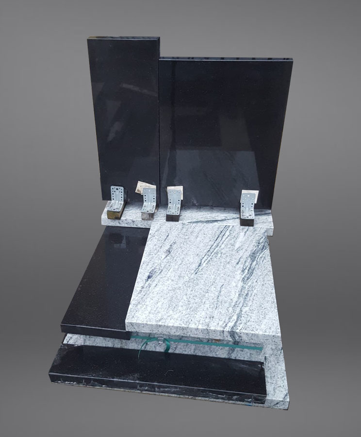 Pomnik granitowy Viscount White wykonany z naturalnego granitu o charakterystycznym biało-szarym użyleniu, zestawionego z eleganckim czarnym granitem. Nowoczesna i minimalistyczna forma podkreśla kontrast kolorów oraz nadaje całości ponadczasowy, elegancki wygląd. Granit Viscount White cechuje się wysoką trwałością, odpornością na warunki atmosferyczne oraz łatwością w utrzymaniu.